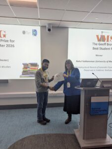 From January 5 to 7, 2026, I attended the Volcanic and Magmatic Studies Group (VMSG) annual meeting at the National Oceanography Centre in Southampton. Supported by a VMSG student bursary, this meeting provided a vital platform to present the ongoing novel aspects of my doctoral research. I presented a poster titled “Microstructural Record of Icelandic Crystal Mushes Preserved in Gabbroic Nodules” in the session on Magma Generation, Storage, and Transport. A core focus was the debut of MAPClean (Microstructurally Adaptive Pixel-level Cleaning), an open-source MATLAB toolkit I developed to automate the cleaning and segmentation of noisy EBSD datasets (available at: https://doi.org/10.5281/zenodo.18052287).